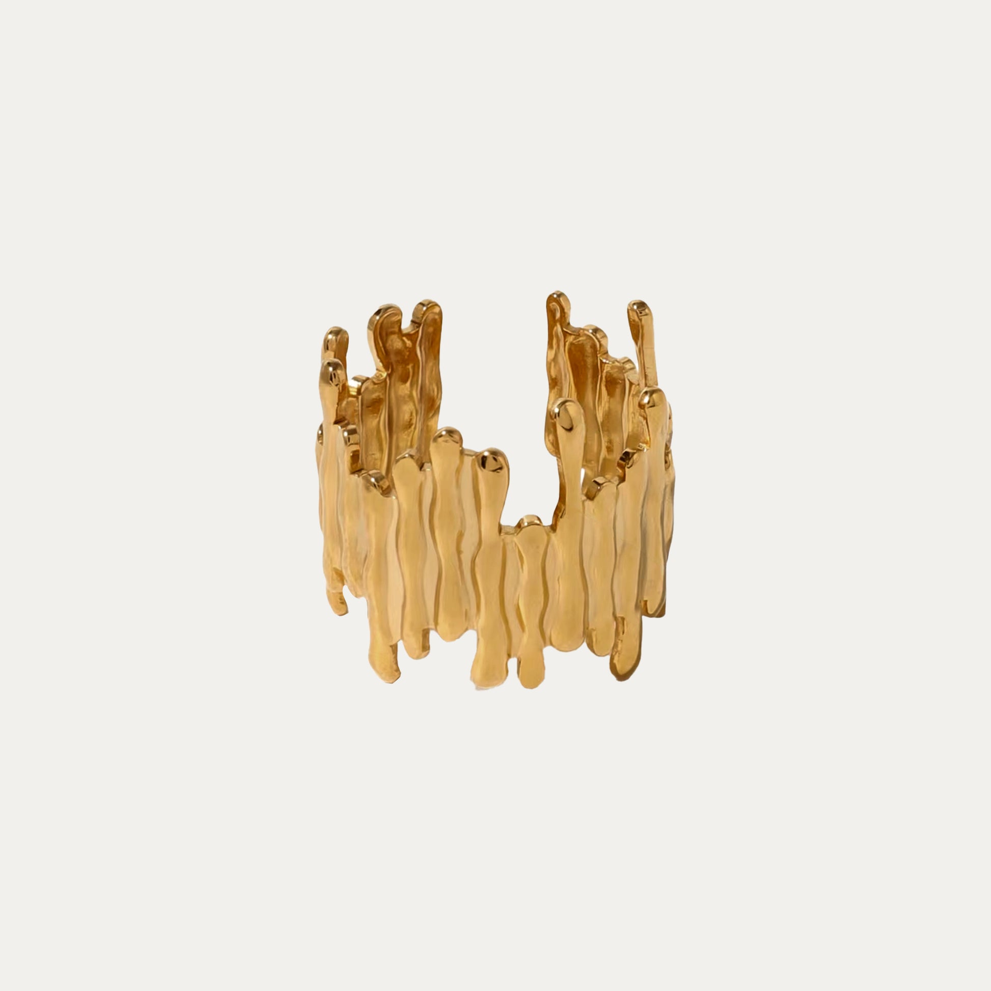Our Balu Ring is all about bold texture. This statement piece is fully adjustable to fit your finger comfortably. Made from 18K coated stainless steel, this bold ring will instantly add attitude to any look.