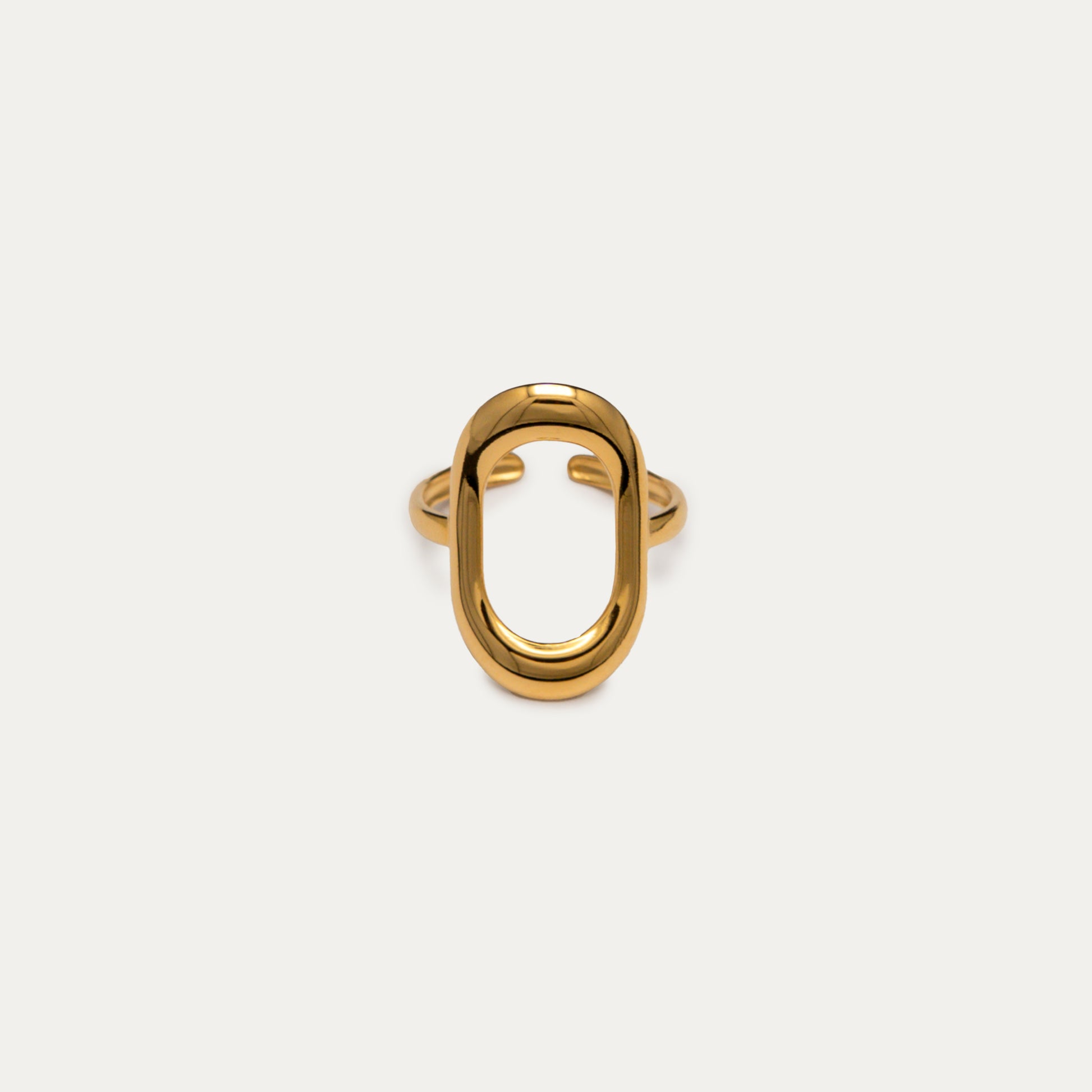 Our Ilya Ring is your go-to for stacking. Made from 18K coated stainless steel, this ring will become your new go-to. With its sleek design and open center, this piece feels minimal yet eye-catching. Stack it, or wear it subtle on its own!