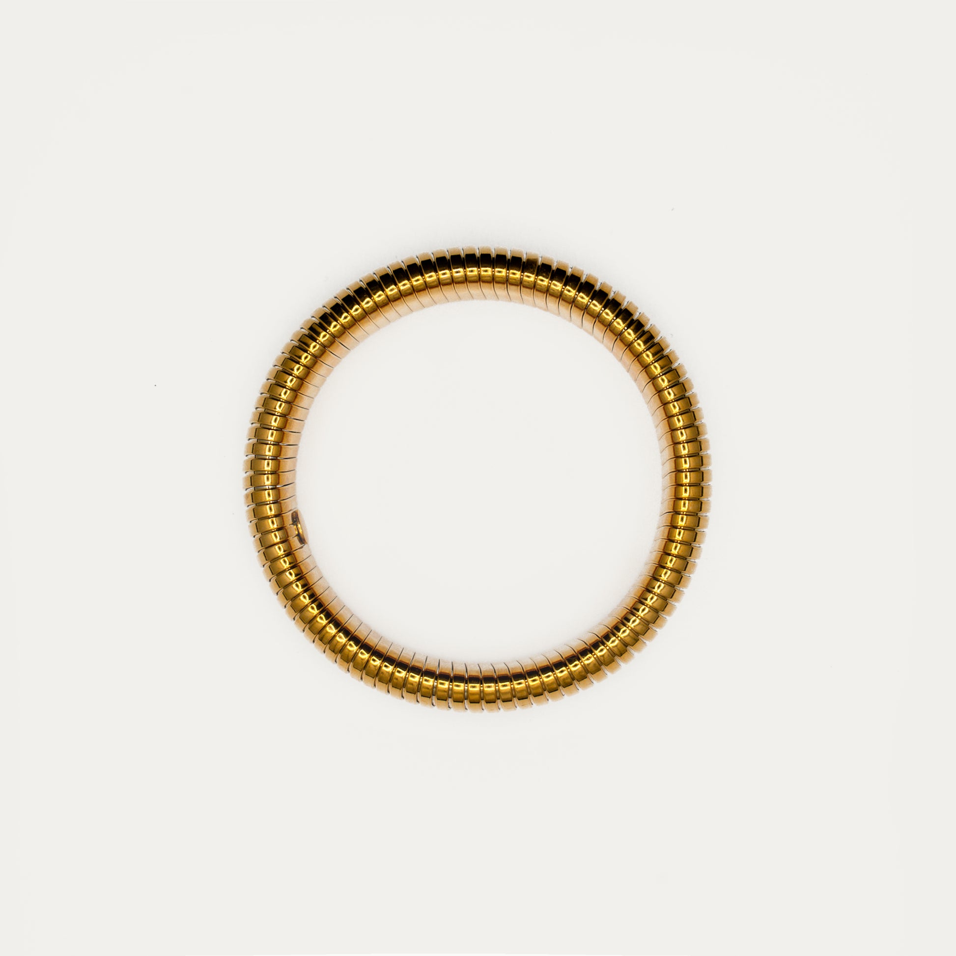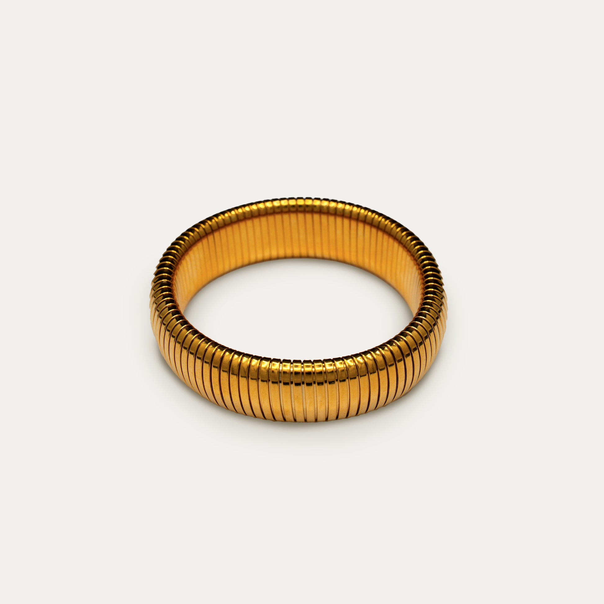 Meet your new go-to bangle. Made from 18K gold-plated stainless steel, this bangle is stretchable, so you can slip it on in seconds.