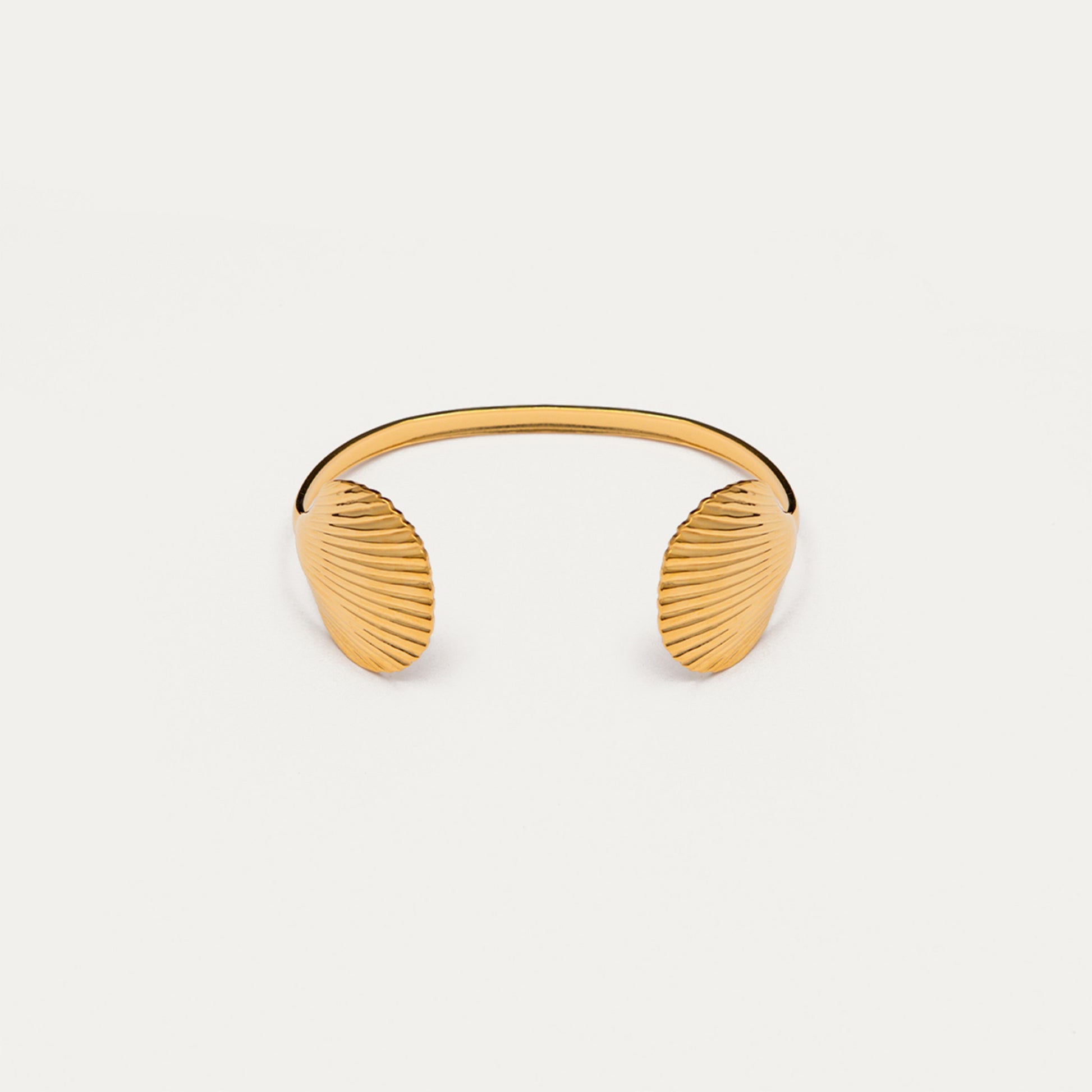 Inspired by salty hair days and endless sunsets, this adjustable bangle features two golden shells that wrap softly around your wrist. Made from 18K coated stainless steel, this bangle is lightweight, easy to adjust, and made to move with you, from golden hour to late summer nights.